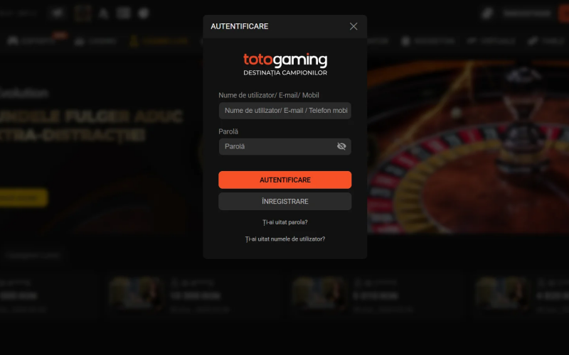 - Autentifică-te în contul tău pentru a accesa secțiunea TotoGaming pariuri live și restul funcțiilor disponibile.